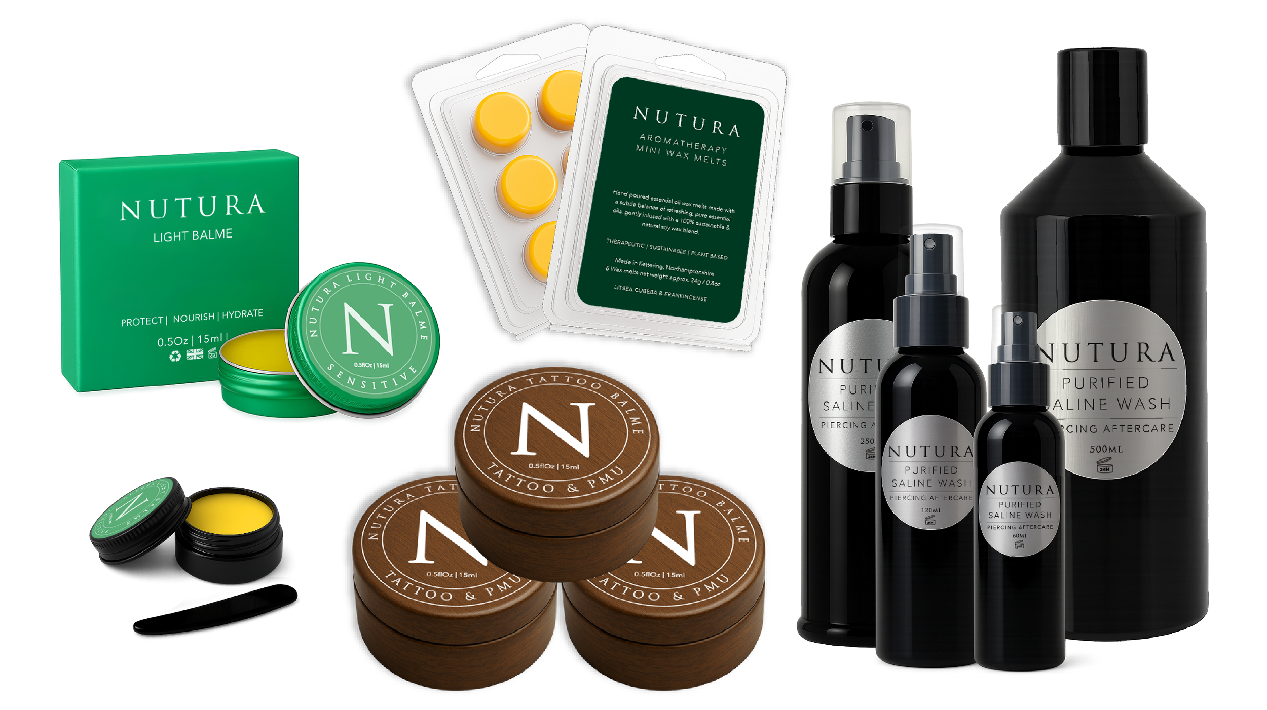 Nutura was born from the tattoo community — created to bring luxury, quality & integrity to tattoo, permanent makeup & piercing aftercare. Our after-care products are designed to protect, soothe and support the skin’s natural healing cycle, offering gentle cleansing and nourishment long after the tattoo, PMU or piercing process is complete.